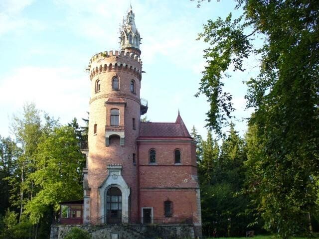V neogotické stavbě se nachází restaurace i rozhledna s výhledem na Krušné Hory, Slavkovský les a Doupovské vrchy.