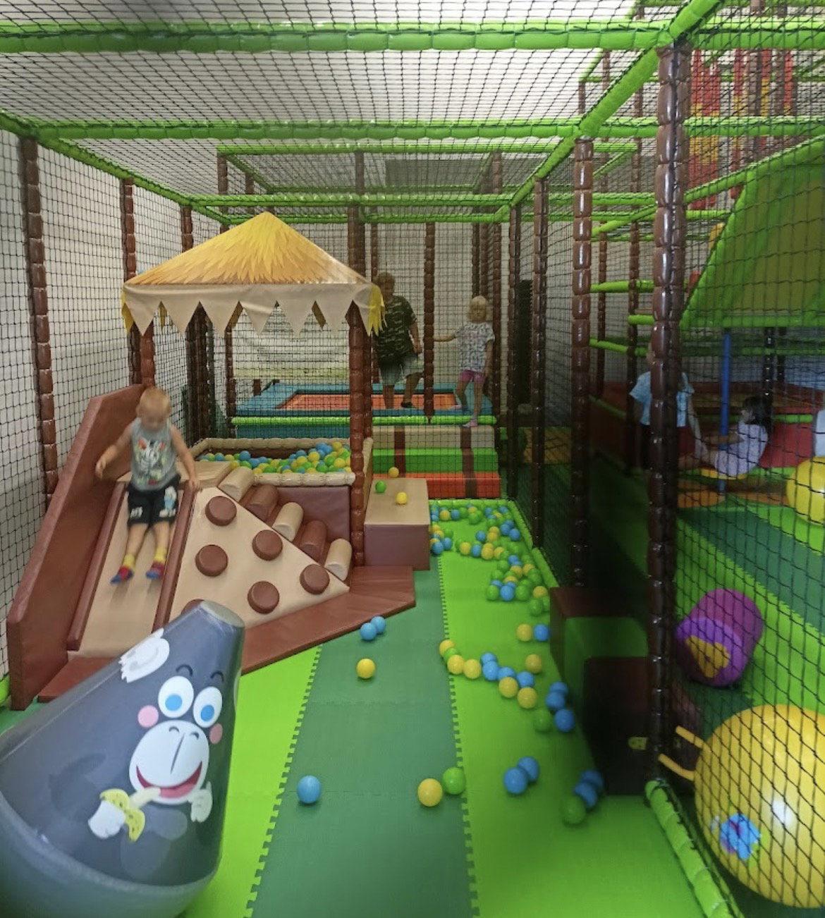Dětská herna s kavárnou, velký prostor pro hraní, možnost oslav, příjemná obsluha.