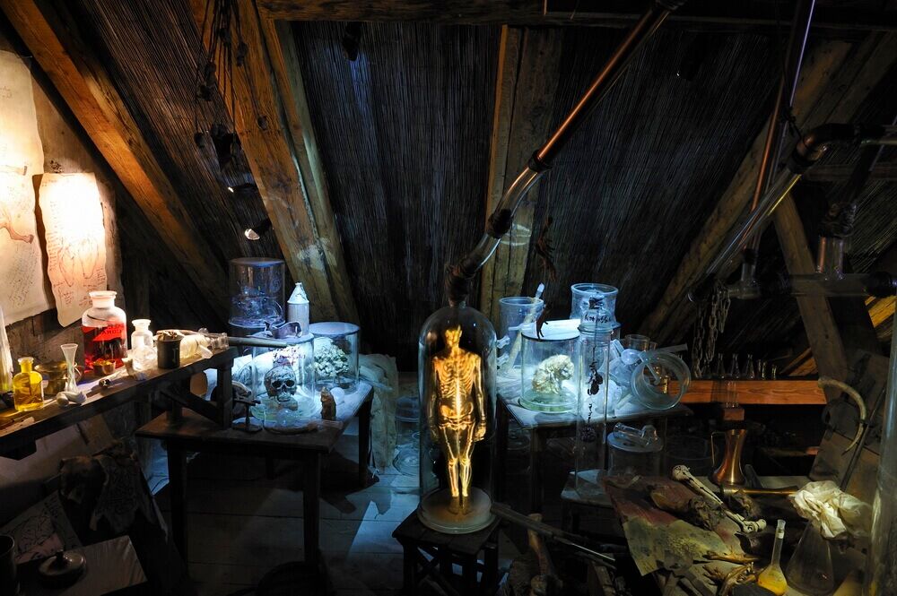 V přízemí domu se návštěvníci dozví základní údaje o alchymii a hlavních osobnostech této dovednosti, a to nejen z druhé poloviny 16. století, ale i z dalších historických epoch napříč staletími až do dnešních dnů. Nechybí ani interaktivní exponáty: Zájemci si mohou sestavit vesmír podle vlastního přání, ozkoušet, zda nemají na rukou zlato, vyrobit kámen mudrců a nebo se stát součástí výroby fosforu v obřím sudu.