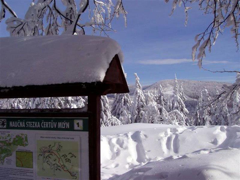 S menšími dětmi pěšky, s většími na běžkách můžete vyrazit pohodovou trasu z Pusteven k masivu Čertova mlýna (1206 m n.m.). Během 8 km trasy vás čeká 9 zastavení. Na nich se dozvíte zajímavosti o přírodě a historii místního života, třeba o poustevnících, o čertovi a mlýně nebo o životě partyzánů. Zabalte si tedy do batůžku svačinu a vydejte se na dvou až tří hodinovou procházku krásnou beskydskou přírodou.