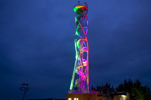 Rozhledna na Fajtově kopci ve Velkém Meziříčí má tvar šroubovice DNA, je vysoká 36 metrů a na její vrchol vede 175 schodů.