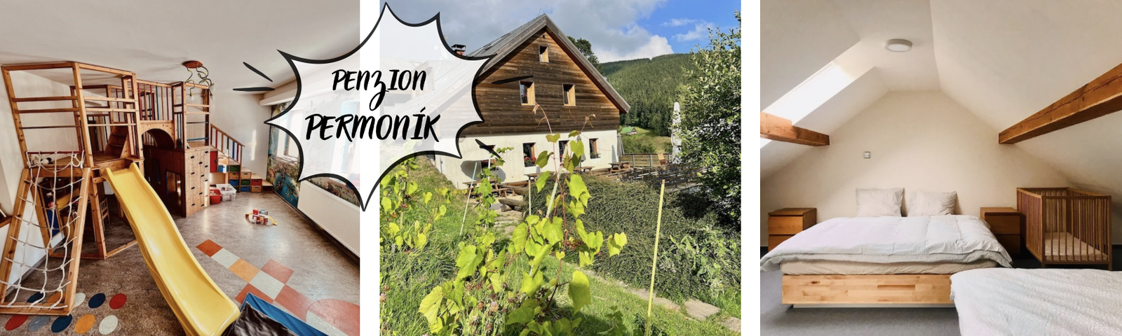 Už jste někdy spali u Víly Amálky, Rákosníčka nebo třeba Krtečka? Že ne? Tak v Permoníku máte tu možnost, protože každý pokoj nese název nějaké pohádkové bytosti. To si vaše malé ratolesti určite zamilují. A nejen to, především velkou vnitřní hernu s parádní prolézačkou, skluzavkou nebo báječnou schovávačkou. Mohou tu třeba skákat panáka nebo hrát ,,Honzo vstávej”. Fantazii se meze nekladou.