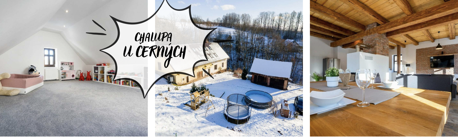 Jste zastánci spíše menšího ubytování s domáckou atmosférou někde uprostřed přírody, daleko od velkých měst a přehršle lidí? Tak to se vám určitě zalíbí Chalupa U Černých, která stojí uprostřed lesů a kopců v samém srdci Krkonoš. A to největší plus? Pořádná herna v podkroví! Takže, až si budete ve stylové jídelně vybízející k pomalé snídani vychutnávat svoji raní kávu, o dětech nebudete ani vědět.