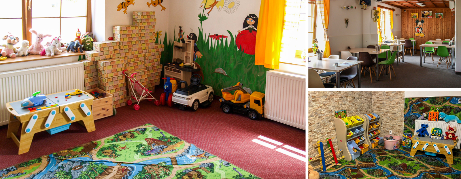 Hned po příjezdu do Penzionu Daniela, který se nachází přímo na Božím Daru, jsme byli nadšení z vybavení pro děti, které tu mají. Čekají tu na ně celé tři dětské koutky, ve kterých si mohou dosyta vyhrát. Nemusíte tak mít po ránu strach, že by vaše děti budily ostatní hosty na pokojích. Stačí s nimi zajít do herničky ve spodním patře a můžete v klidu ve společnosti hraček počkat na čas snídaní.