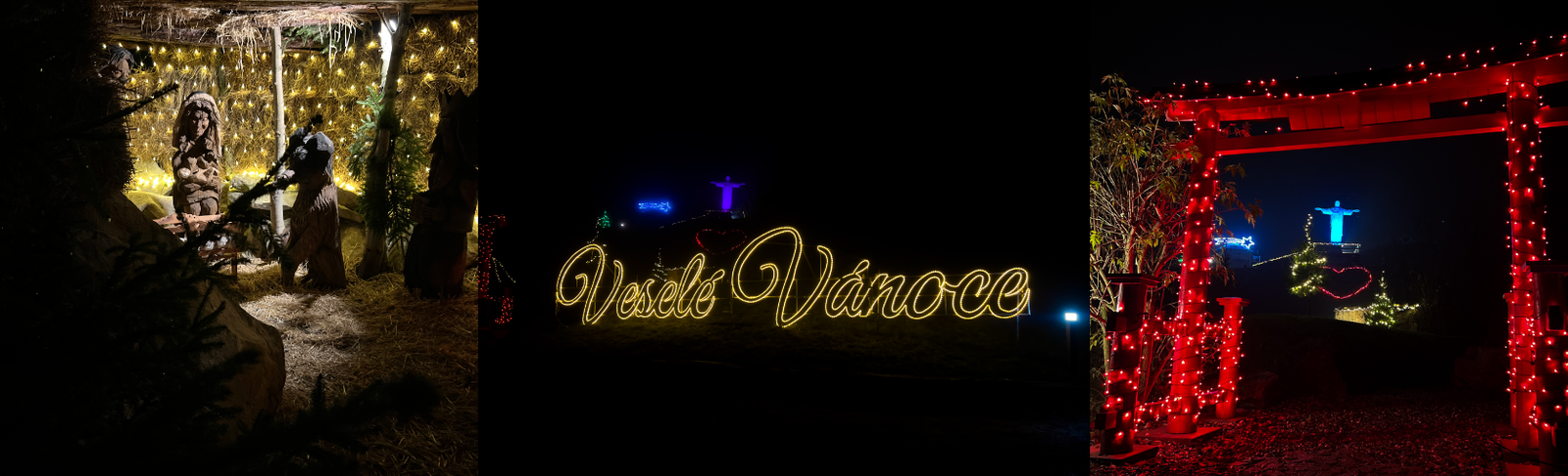 Tady váš čeká 300.000 světýlek, největší výstava dětských vánočních stromečků v ČR, voňavý svařák, trhy, betlém, zimní minigolf a možná i… bobování, pokud počasí dovolí! A když projdete celý areál, čeká vás zářící minigolf, dětské dílničky, jízda na koních, kolotoč a dobroty od trdla po langoše. Víkendy patří vánočním trhům, světelná show běží každý den od 16:00 a pokud chcete domů voňavý český stromeček, koupíte ho přímo na místě.
