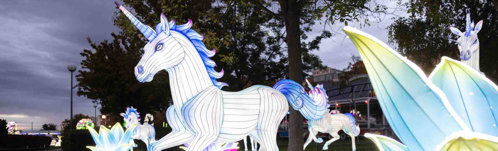 Lumina Park – Dobrodružství světel (Praha): Vydejte se s dětmi na večerní výpravu plnou světelných pohádek od Draculy přes Narnie až po vesmírné planety.