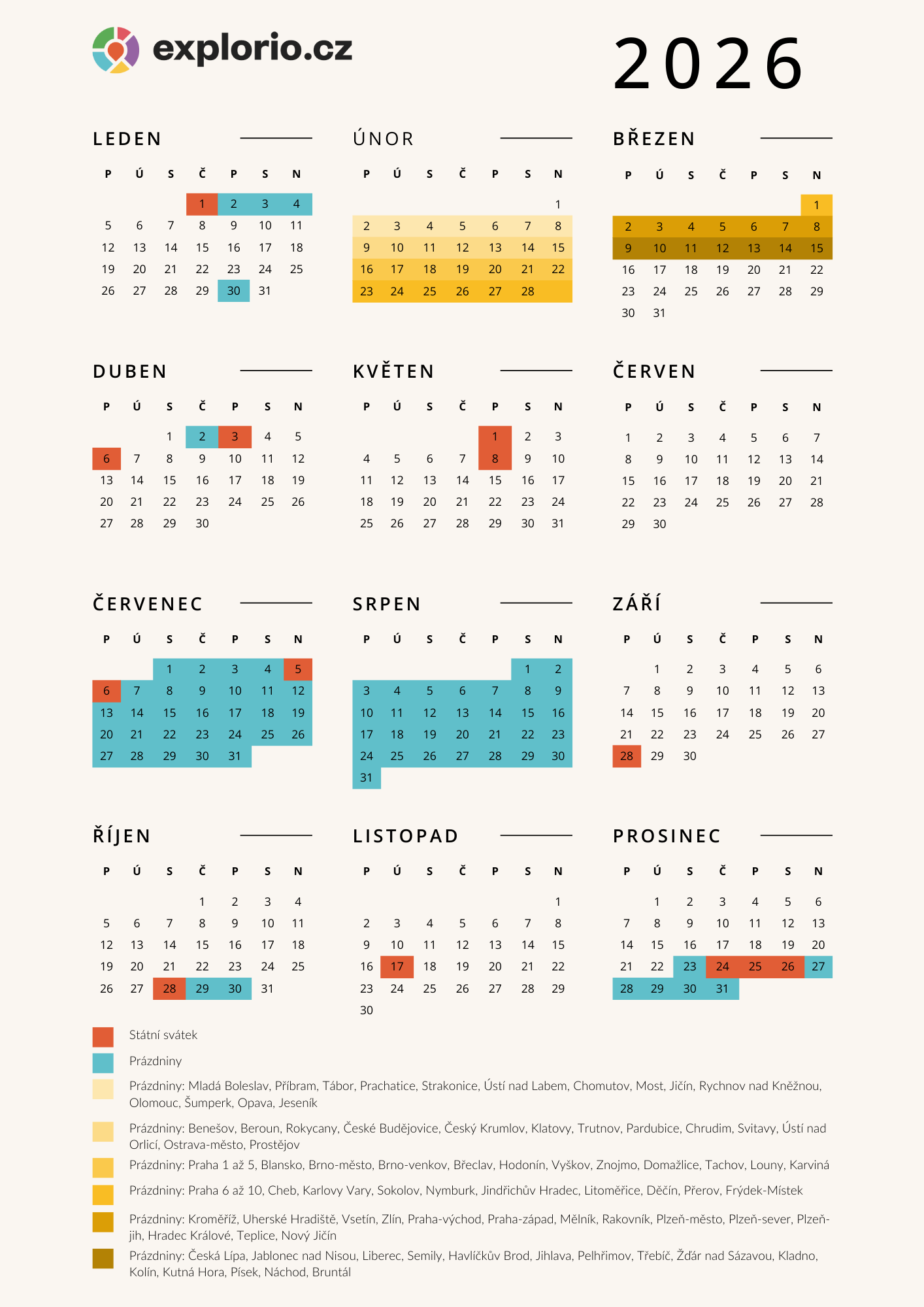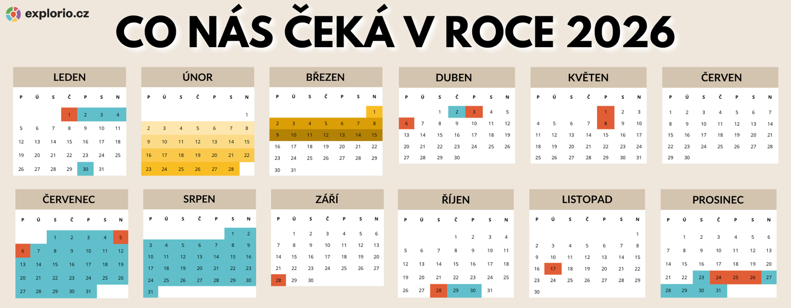 A abyste přehledně viděli celý rok, na co se máte těšit, připravili jsme pro vás kalendář státních svátků a prázdnin v roce 2026 – stáhnete ho níže.