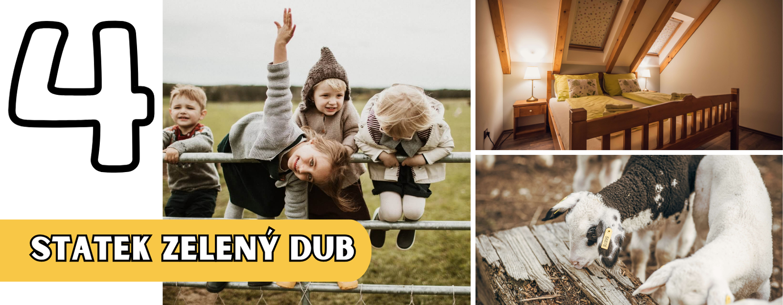 Zažijte klid a pohodu na Zeleném statku – místo, kde se děti smějí, zvířátka se prohánějí a vy odpočíváte, zatímco nejmenší na krásném hřišti s travnatými kopečky.