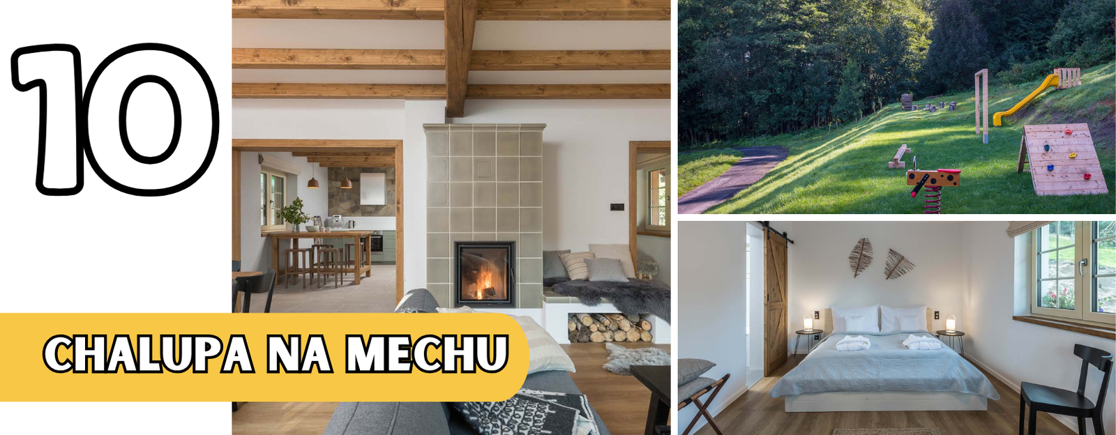 Tohle místo si své místo v TOP 10 rozhodně zaslouží. Jen pár kroků od lesa plného praváků najdete stylovou roubenku s rozlehlou zahradou, trampolínou i vlastním jezírkem.