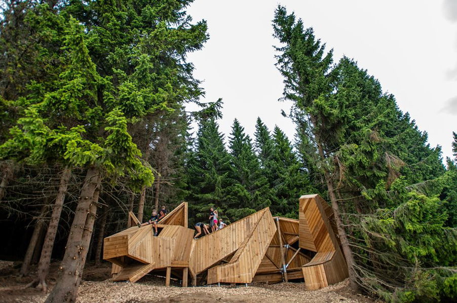 Troufnete si dát hlavu do tlamy rysa? Na Portáškách v Krkonoších najdete Herní krajinu Pecka s dřevěnými modely zvířat v nadživotní velikosti, lanovými stezkami a prolézačkami. Vstup je zdarma a dostanete se sem pěšky i lanovkou. A pro cestu dolů si můžete půjčit koloběžky.