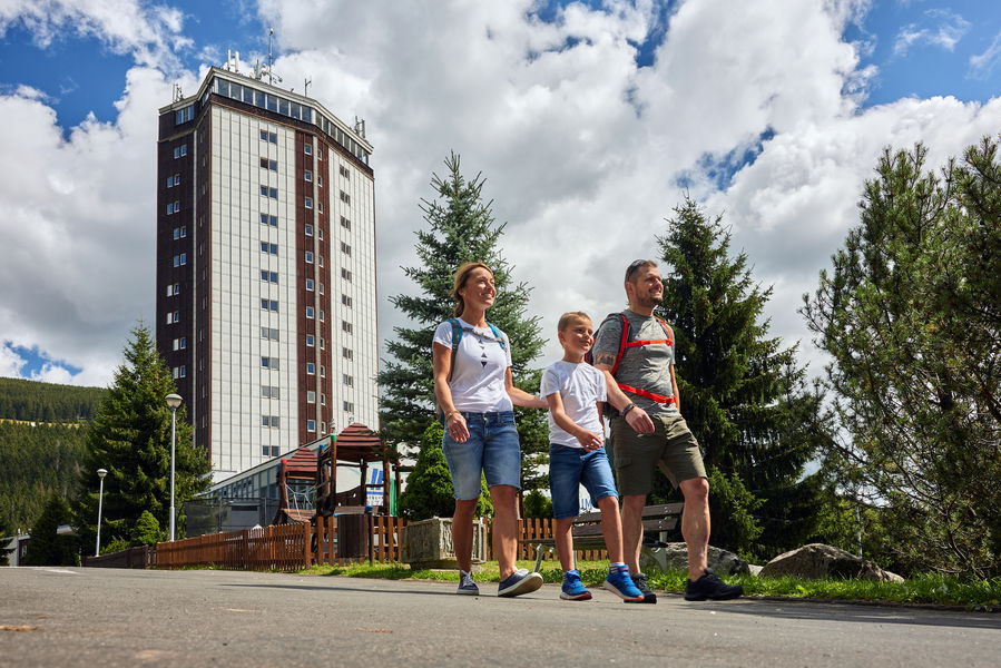 Ačkoliv zvenku tak moc nevypadá, uvnitř ukrývá ráj pro rodiny s dětmi. Ubytování na úpatí nejvyšší české hory, sjezdovky nebo v létě výchozí body na procházky jen pár metrů od hotelu, animační program pro děti, zkrátka téměř vše, na co si jen vzpomenete. Děti budou naprosto nadšené a i vy si najdete chvilku na obyčejný odpočinek u kávy, zatímco o děti je skvěle postaráno.