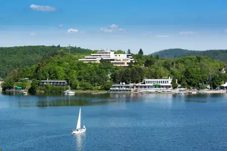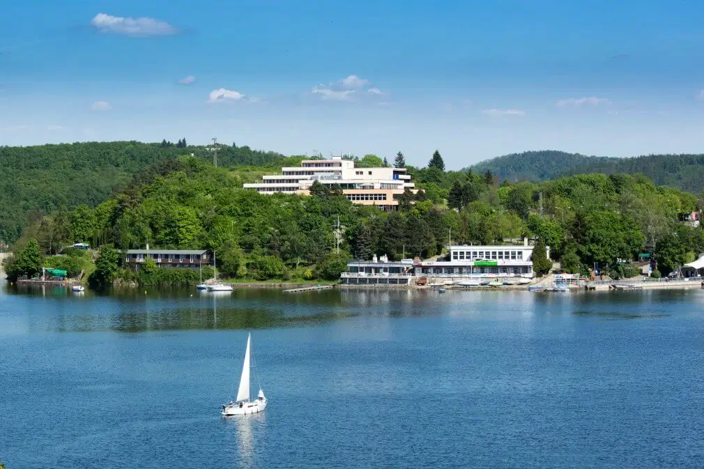 Přímo na břehu Brněnské přehrady stojí OREA Resort Santon. Z balkonu budete mít krásný výhled a stačí sejít pár schodů a jste v přístavišti Bystrc, kde začínají lodě své pravidelné plavby po přehradě. Kolem přehrady je plno pláží a na nejbližší dětské hřiště dojdete za pár minut po asfaltové cyklostezce. Hotel i jeho okolí můžete detailně prozkouma...