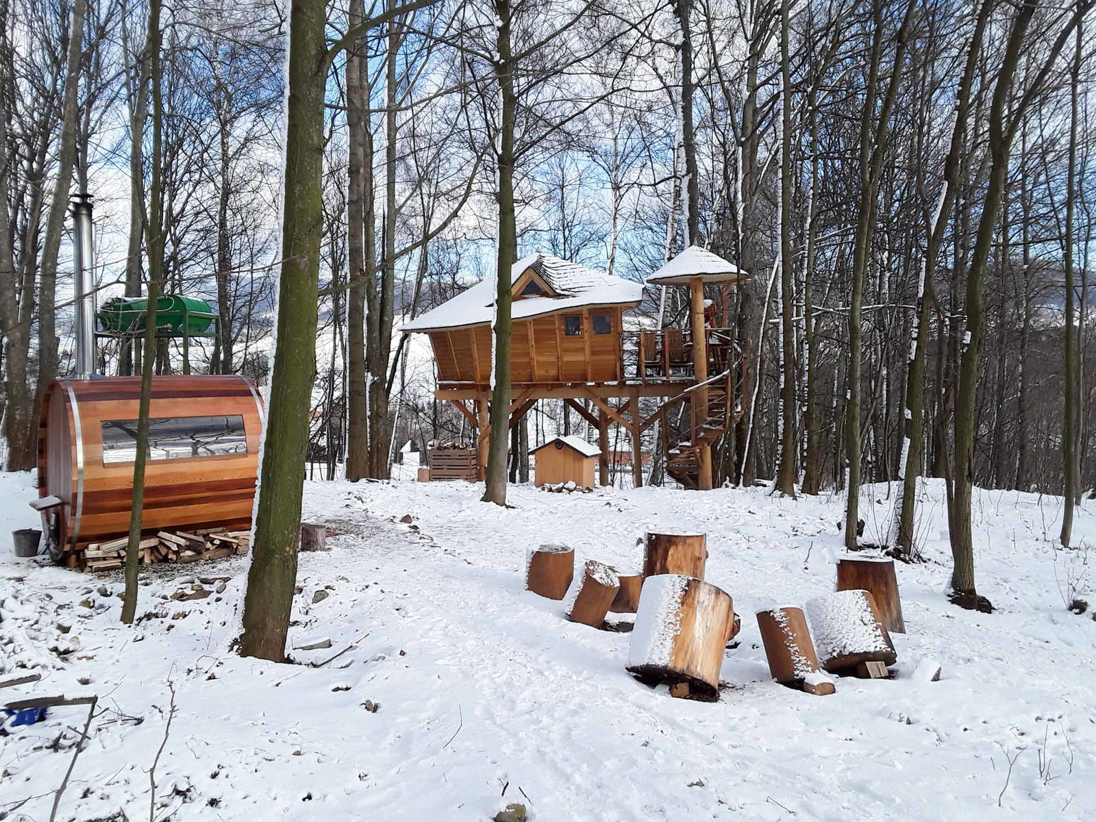 Treehouse Sněžník najdete na začátku obce Dolní Morava na rozhraní Orlických hor a Jeseníků. Nabízí nevšední ubytování v korunách stromů, ohniště, saunu a hlavně totální návrat k přírodě.