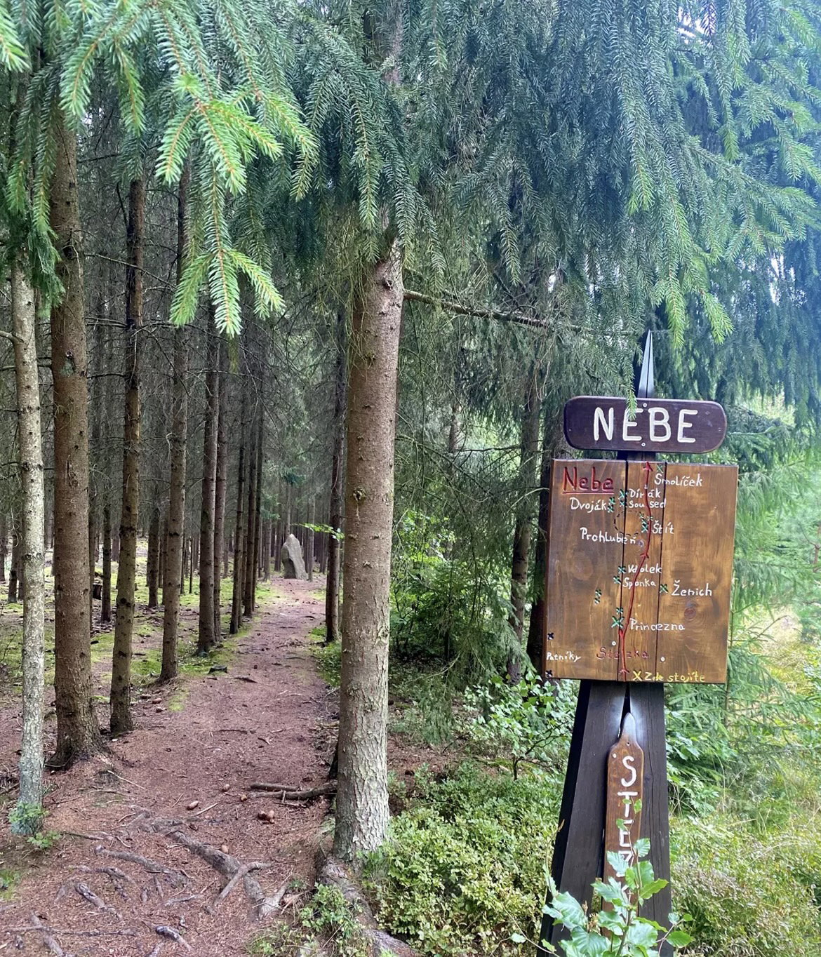 4,5 km dlouhá naučná stezka s mnoha menhiry, u cesty je vždy ukazatel se jménem daného kamene. Skoro celé je sjízdné krásně kočárkem, až na závěrečných cca 300 metrů (ale lze se vrátit zkratkou kolem Slůněte zpět). V lese je i menší parkoviště pro několik aut.