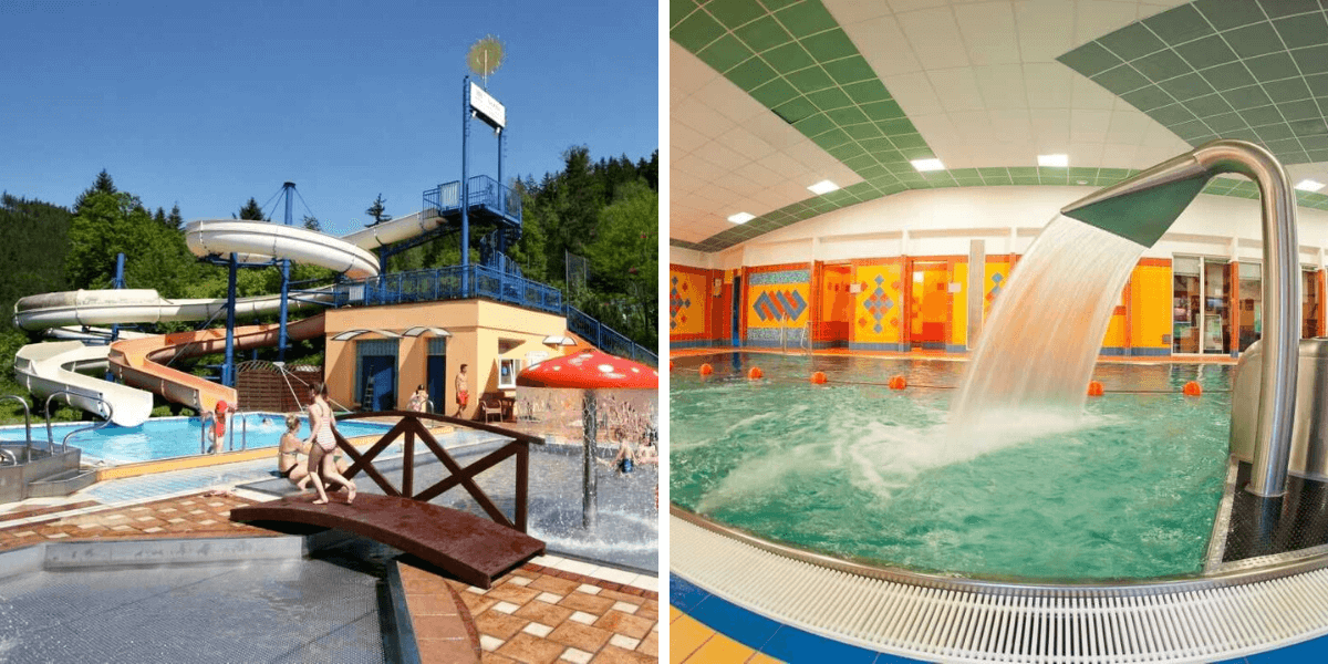 Máte rádi vodu? K penzionu Sluníčko patří venkovní koupaliště se dvěmi tobogány a 90metrový tobogán najdete i v krytém bazénu v RelaxCentru Sepetná, kde je i dětské brouzdaliště pro nejmenší.