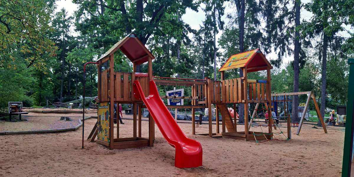 Plzeňský DinoPark vyrostl v příjemném lesoparku hned vedle zoo. Je to jedno velké dětské hřiště. Realisticky zpracované a pohyblivé makety dinosaurů v životních velikostech doplňují dětské houpačky, prolézačky, klouzačky, kolotoč, obří pískoviště s kostrou dinosaura nebo vodní stříkačka. Díky vysokým stromům je tu stín, takže tu příjemně strávíte i tropické letní dny. Návštěvu můžete spojit i s vedlejší zoo. V létě doporučujeme začít zoologickou zahradou, protože tam se před sluníčkem příliš neschováte.