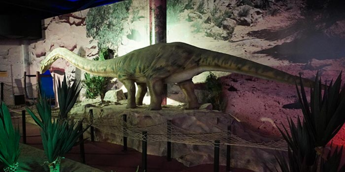 DinoPark Praha najdete na střeše nákupní galerie Harfa, hned vedle O2 Arény. První dinosaury vidíte už dole z ulice, vyjedete do posledního patra, kde už vás čeká brána ve stylu Jurského světa. Kromě nejrůznějších druhů pohyblivých a ozvučených dinosaurů si děti užijí hřiště, průchod „tunelem času“ do expozice o historii, paleontologické pískoviště nebo dinosauří rodeo.