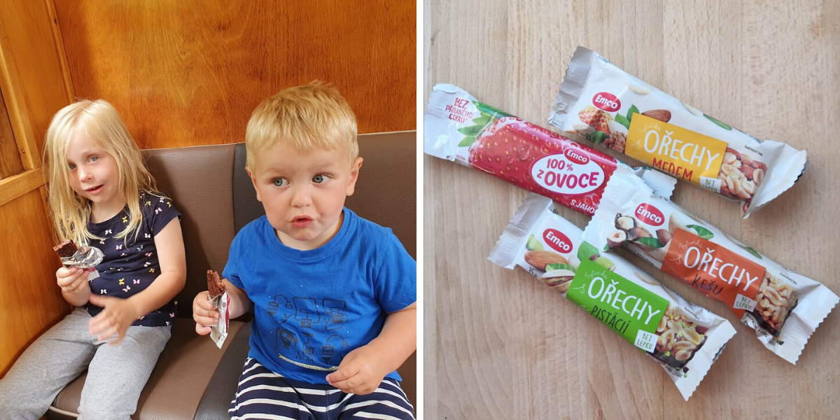 My jízdu vláčkem využili nejen k odpočinku unavených dětských nožiček, ale také k posilnění. Jako ideální volba pro svačinku na cesty nám posloužily zdravé tyčinky Emco. Vejdou se do každého batůžku, a navíc se s nimi děti neupatlají 😊 . Navíc rádi podporujeme české výrobce.