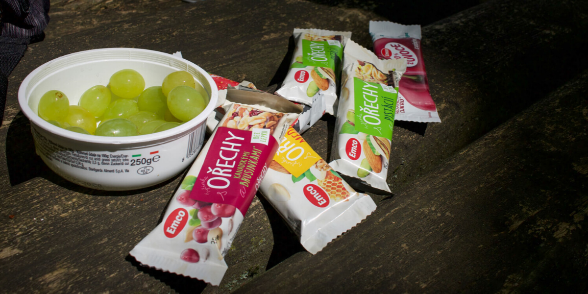 2 kilometry jsou pro dospělého úplná hračka, ale naši malí výletníci chtěli každou chvíli pauzičky a taky něco dobrého. Zhruba v půlce kopce jsme proto vybalili zásoby Emco svačinek. Ořechové tyčinky byly výborné, dodaly rychlou energii a přitom nás v batohu rozhodně nijak netížily. Navíc jde doslova o lokální výrobek, firma Emco je vyrábí v Hrdlech, což je k Řípu co by kamenem dohodil. :)