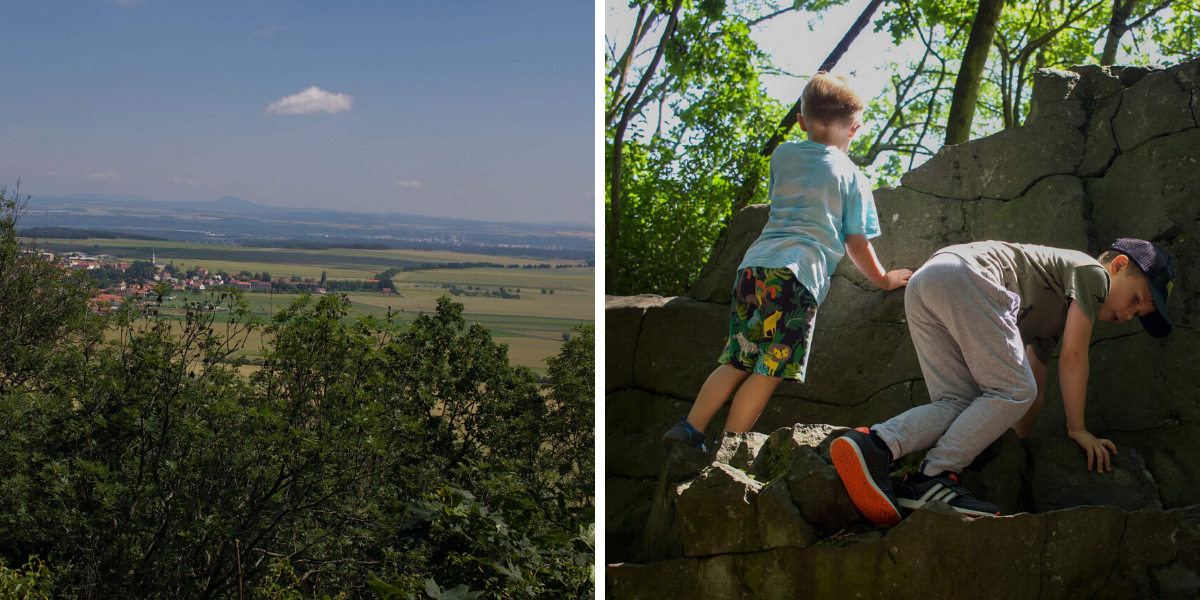 Po svačině si kluci ještě chvilku hráli na horolezce, užili jsme si výhled do krajiny a vyrazili zase vzhůru do kopce.