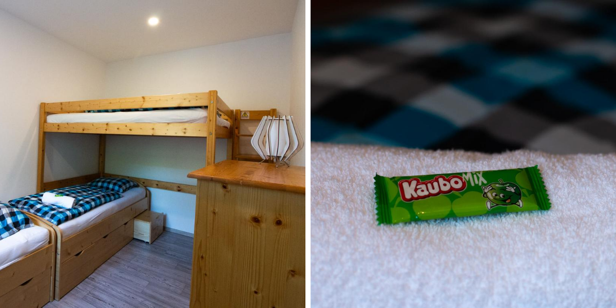 Syn byl nadšený z patrové postele, kterou si teď hrozně moc přeje i domů. A snad ještě o trošku větší radost měl z dobrůtek připravených na ručnících.