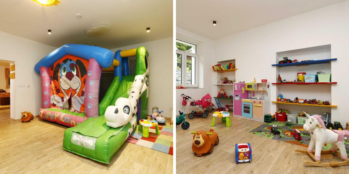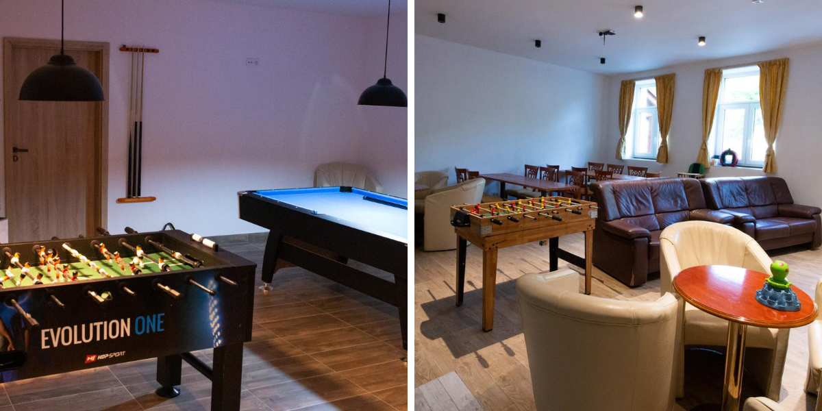 Větší děti i rodiče určitě ocení hernu a společenskou místnost.