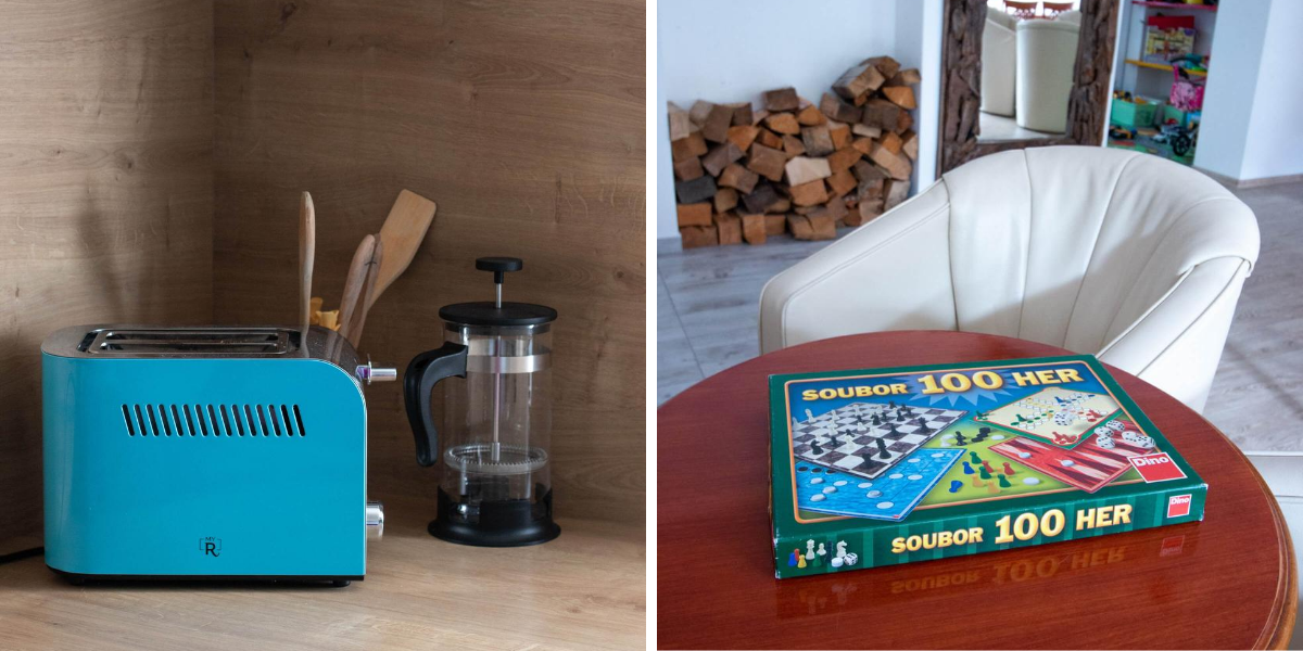 K zapůjčení je třeba i toustovač, takže vaše snídaně budou ještě luxusnější. A po snídani můžete uspořádat rodinný turnaj třeba v Člověče, nezlob se.