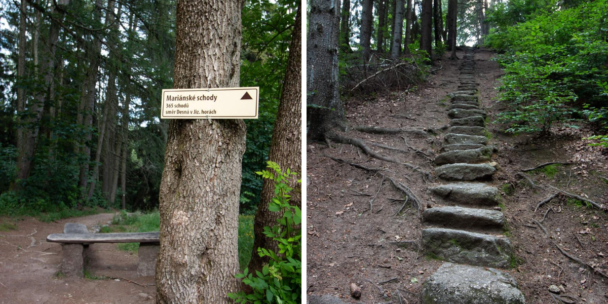 Cesta na Mariánské schody začíná přímo nad domem a ty vás zavedou do malebné části Albrechtic plné roubenek s krásnou kapličkou. Každou neděli k ní prý chodívali místní z Desné, trase se začalo říkat "Svaté schody".