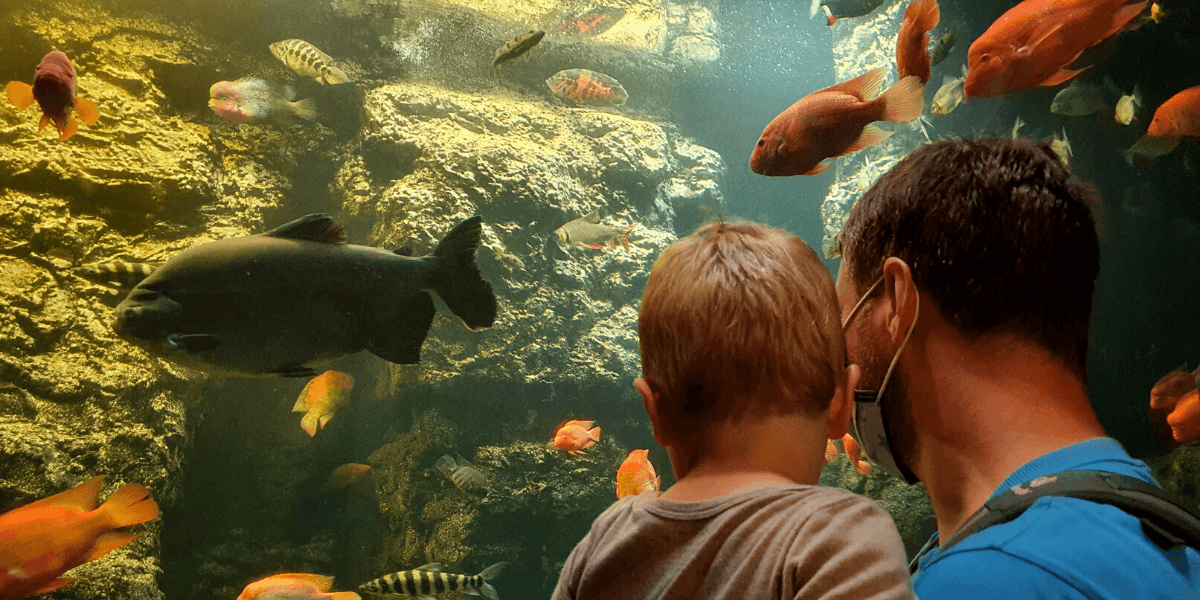 Název tohoto akvária je poněkud zavádějící, shodli jsme se, že by se spíš hodil název obří domácí akvárium :-D. Ale jelikož nám jeden celý den pršelo, neměli jsme příliš na výběr, kam s dětmi vyrazit. Akvárium v Hradci se sestává v podstatě ze dvou místností, v jedné jsou kostry ryb, v druhé hlavní atrakce akvária v podobě podvodního sladkovodního tunelu, nad tunelem je pak k vidění tropický skleník. V rámci vstupného můžete ještě navštívit videoprojekci a na závěr si dát něco dobrého v Café Piraňa, kde mají i dětský koutek. My však kavárnu vynechali a raději jsme na doporučení vyrazili do restaurace Pasta Cook&Look.