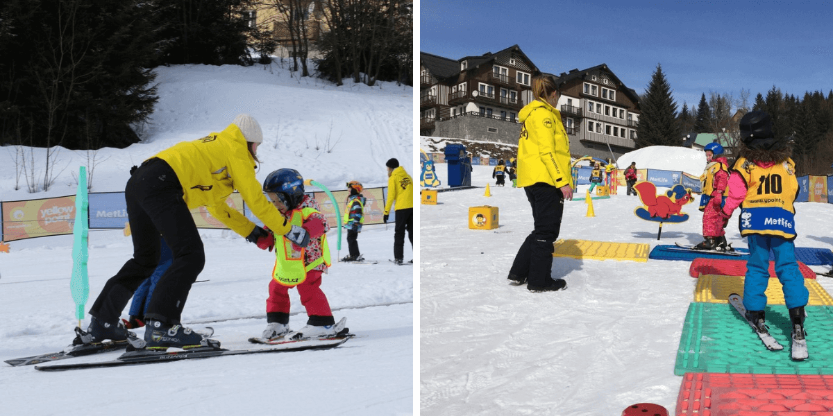 Na první lyžařské začátky vyzkoušejte kratší lekci, ale poté už můžete využít celodenní lyžařskou školu, kterou o víkendech nabízí Yellow Point. O vaše děti se postarají od 10 do 16 hodin. Dopoledne 2 hodiny probíhá lyžařská výuka, následuje oběd a odpočinková pauza s hlídáním a odpoledne zase 2 hodiny lyžují. Hlásit můžete děti od 4 do 12 let, těšit se mohou i na soutěže a závody.