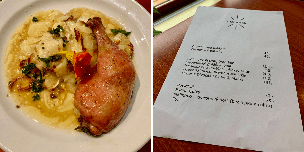 Vzhledem k tomu, že všechny ostatní restaurace byly v době našeho pobytu zavřené, tak jsme v restauraci Stará Vápenka nejen snídali, ale i večeřeli a všechna jídla, která jsme ochutnali, byla naprosto vynikající.