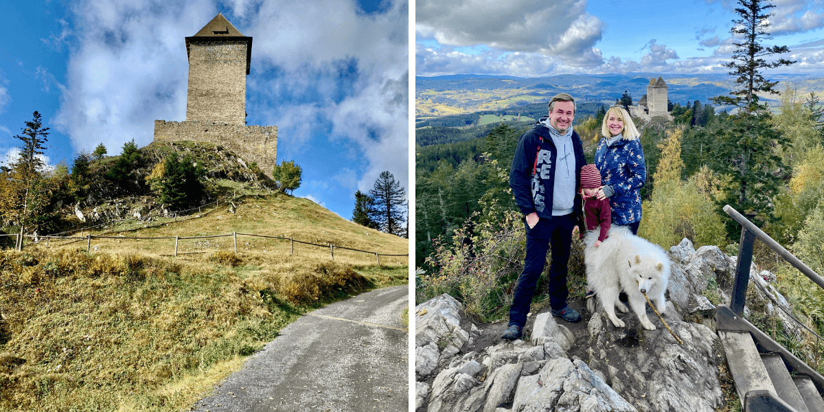 V neděli dopoledne jsme se Starou Vápenkou rozloučili a udělali jsme si poslední malý výlet ke hradu Kašperk, kde se natáčela pohádka Anděl Páně a cestou zpátky na parkoviště jsme to vzali přes Pustý Hrádek, odkud je nádherný výhled do celého okolí i na samotný Kašperk.