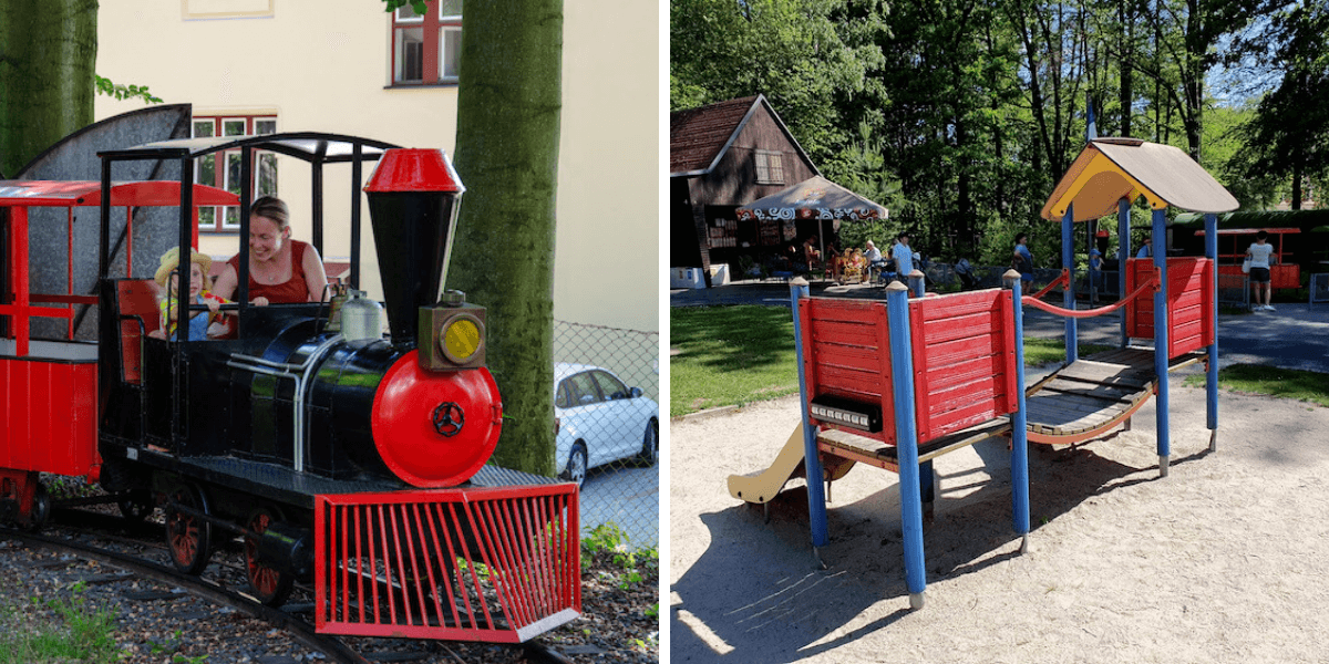 Nejvíc nás však nadchnul místní dětský koutek. Ten se nenachází přímo v areálu ZOO, ale u parkoviště (naproti vstupu). Za velmi příznivé vstupné si mohou děti užívat jízdu na elektrickém vláčku či ruském kole. Mohou krmit kozy, prolézat bludiště, blbnout na průlezkách, ve vodním brouzdališti, houpačkách, odrážedlech a spoustě dalších atrakcí. A navíc děti do tří let mají vstup zdarma!