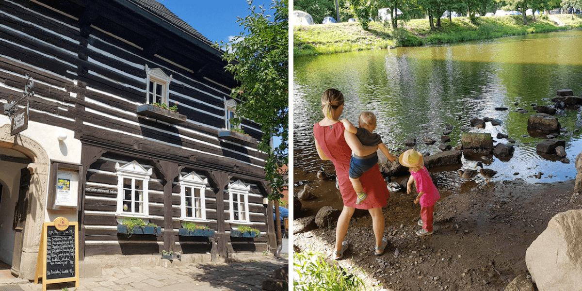 Z parkoviště pod Pantheonem Malá Skála se můžete pohodlně projít s kočárkem směrem k hostinci Boučkův statek. Cestou se lze osvěžit v řece Jizeře, pohrát si na hřišti v kempu nebo třeba nakrmit kačenky. V Boučkově statku pak určitě doporučuji zakotvit na oběd, vaří tu vynikající českou kuchyni a navštívit můžete i místní galerii. Naproti statku pak prodávají moc dobrou točenou zmrzlinu, najdete tu i malinkou kavárnu.