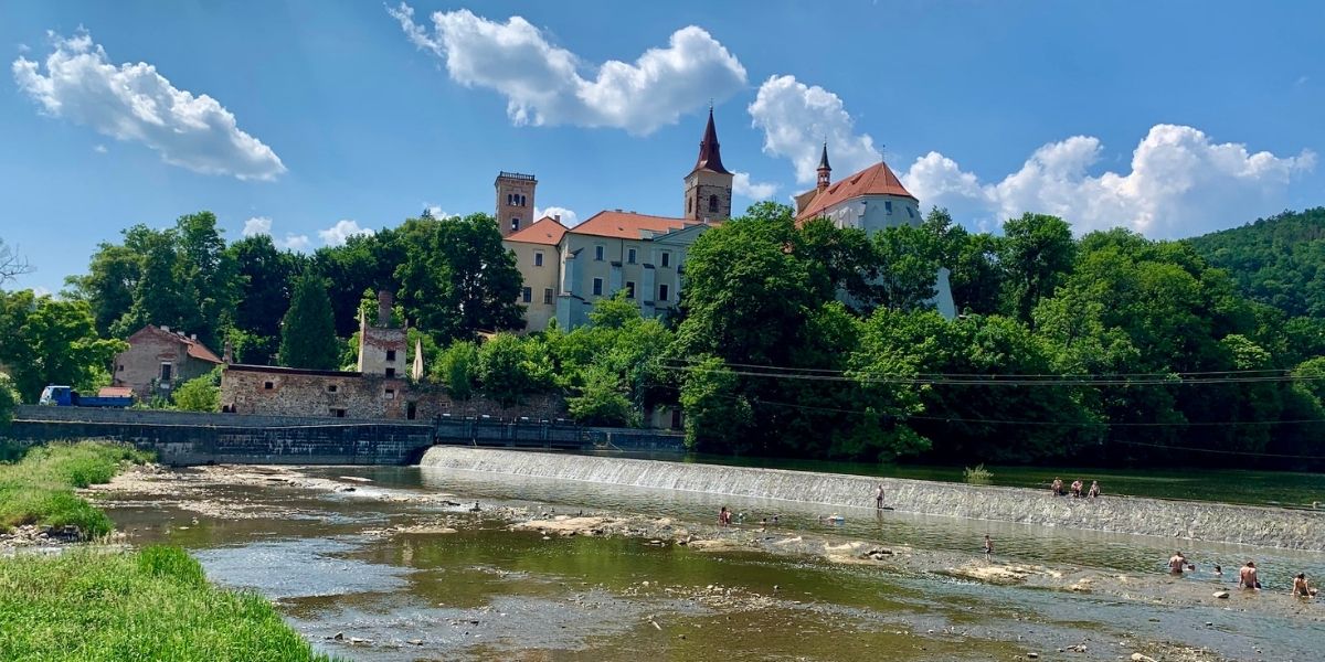 Příjemný stín nás provázel i cestou k Sázavskému klášteru. Lze jít přes město, ale mnohem příjemnější je cesta podél vody po červené turistické značce.