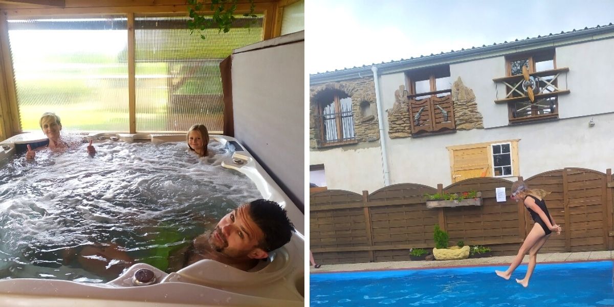 Během pobytu jsme měli možnost navštívit vířivku, vzdálenou asi 5 min pěšky od ubytování. A pro hosty tu mají i venkovní bazén. Počasí koupání úplně nepřálo, tak se dcera jen rychle smočila a rychle na pokoj.