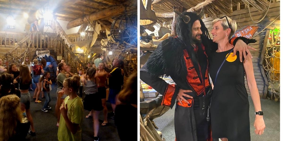 Páteční večery tu pravidelně pořádají čertovskou zábavu. DJ za mixážním pultem a čerti s dětmi dokázali zvednout z lavic a židlí i nás starší. A proběhla i tombola o čertovské ceny.