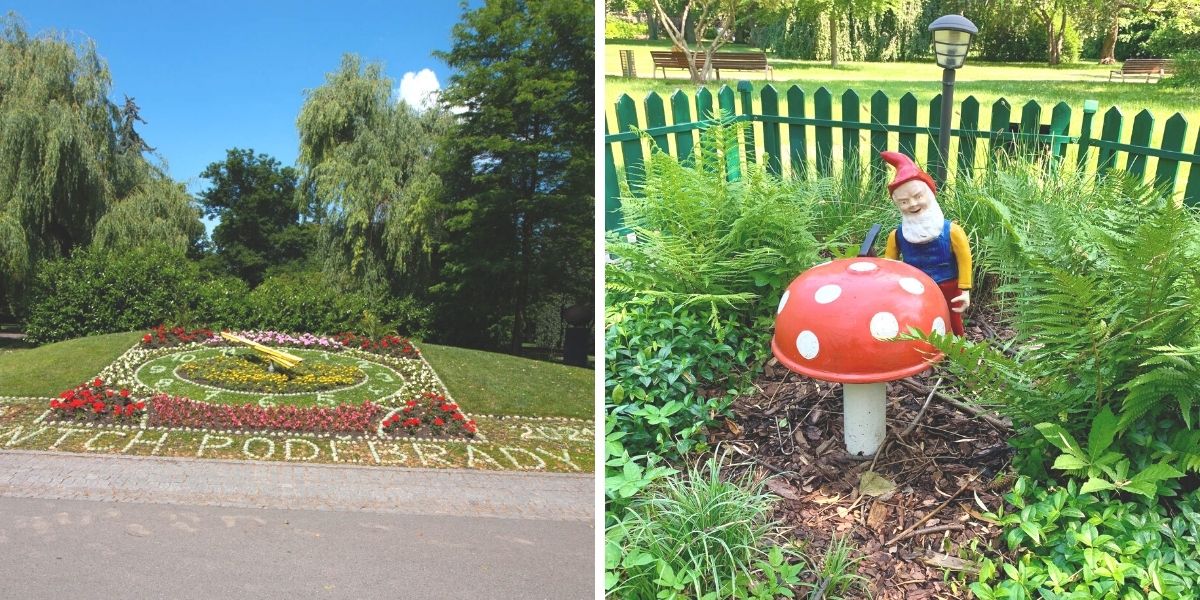 Za unikátními květinovými hodinami proti hotelu Libenský se ukrývá muchomůrka s trpaslíkem. Kladívkem tu odbíjí každou celou hodinu, u dětí je to velmi oblíbená podívaná - nenechte si ji ujít.