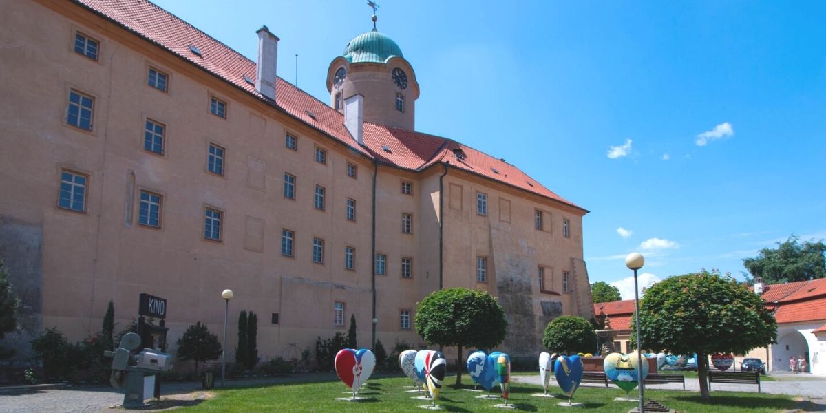 Se zmrzlinou v ruce se můžete vydat na prohlídku volně přístupného nádvoří zámku. Klasickou prohlídku komnat zde nečekejte, na zámku sídlí Ústav jazykové a odborné přípravy zahraničních studentů Univerzity Karlovy. Najdete tu ale také muzeum a kino.