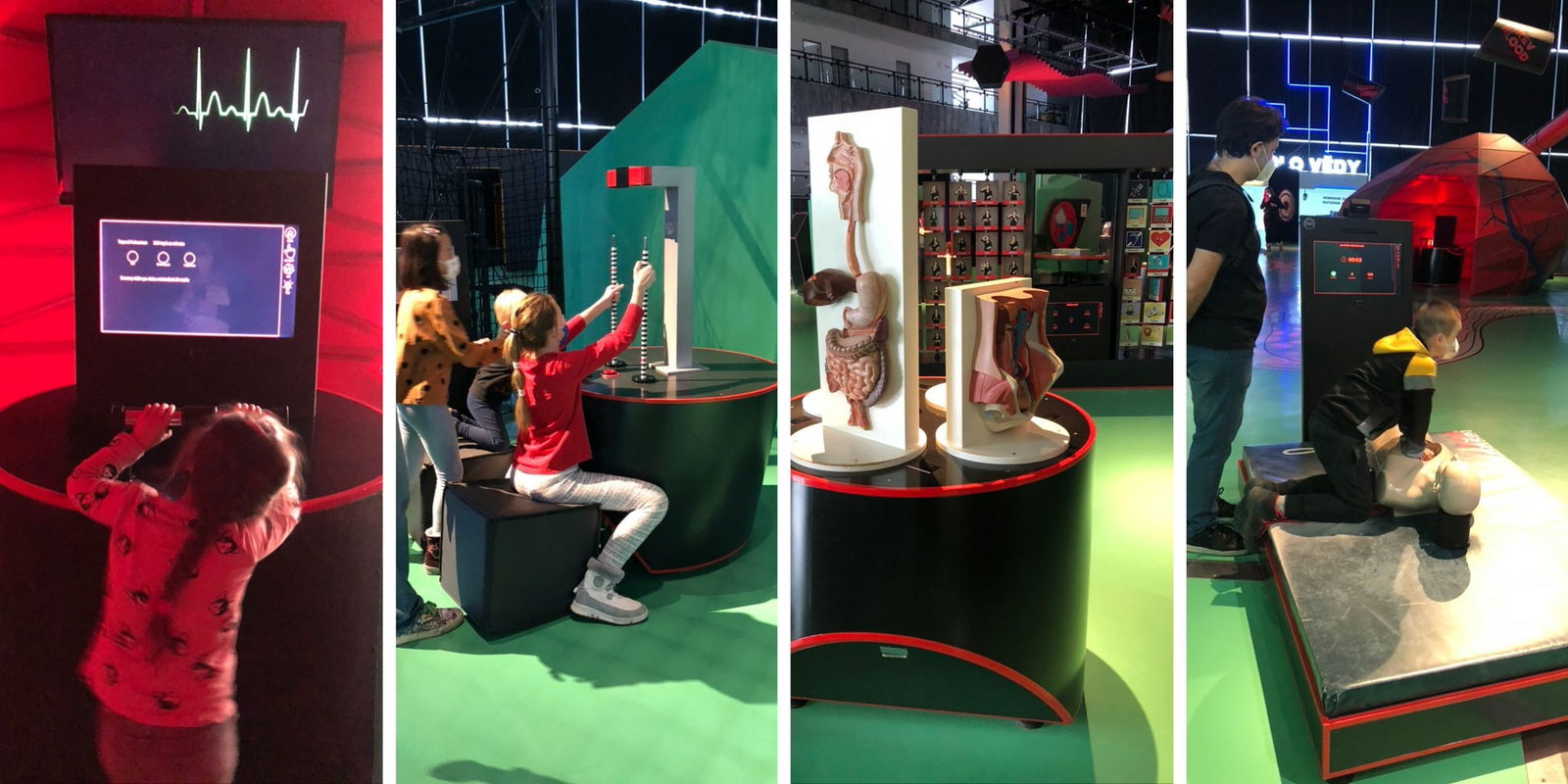 Poměrně dost času jsme strávily v sekci Člověk. Tady jsme objevovaly orgány v těle, vyzkoušely si první pomoc, pod rentgenem pozorovaly části těla, snažily se udržet rovnováhu na balanční plošině, změřily si srdeční tep a učily se znakovou řeč.