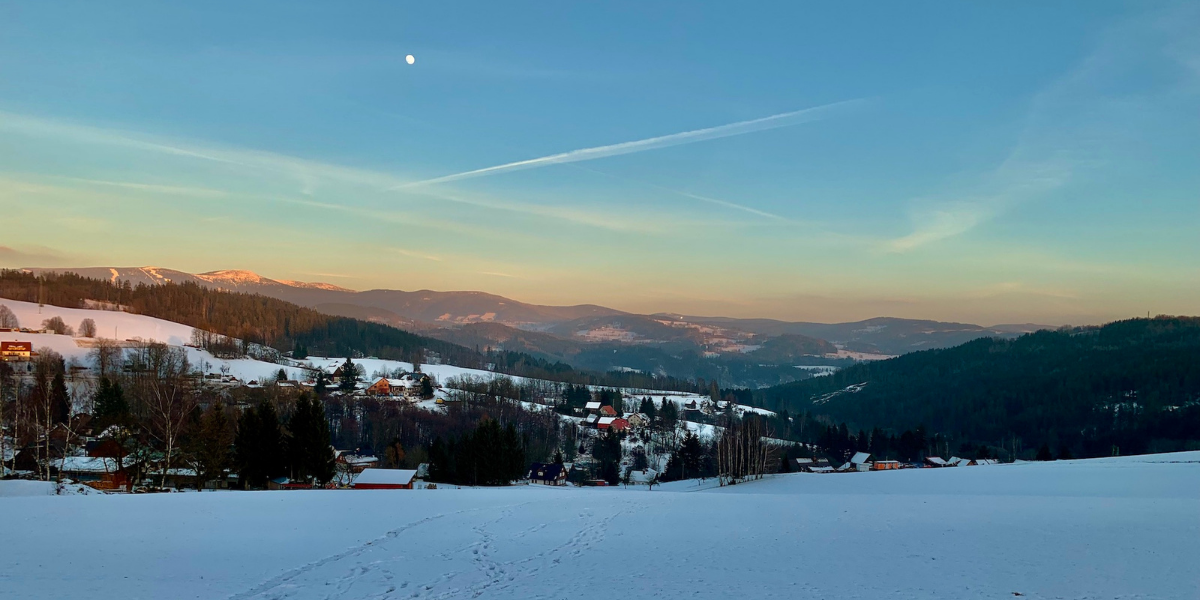 U sjezdovky Větrov jsme využili i večer otevřeného Bufetu U Zdeničky s překvapivě širokým výběrem jídel. Cestu mezi sjezdovkou Větrov a hotelem Kramářova vila už lemuje veřejné osvětlení, takže ani procházky tmou nejsou problém.