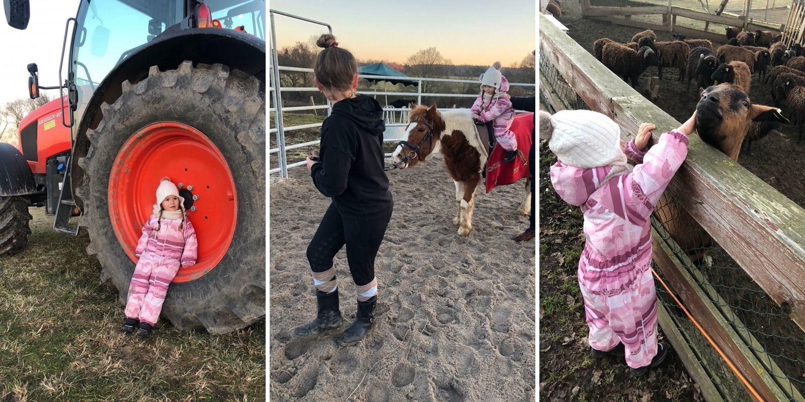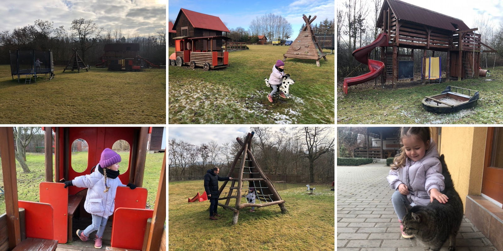 Z Prahy jsme vyrazili v sobotu dopoledne a cesta nám trvala něco málo přes hodinku. Jeli jsme podle navigace, i když posledních pár kilometrů před cílem jsme zahlédli první ukazatele směru a bez bloudění dorazili na farmu. Ta leží kus od hlavní cesty, obklopena loukami a polem, takže zde byl nejen klid, ale i bezpečí. Hned po zaparkování nám dcerka (3,5 roku) utekla na dětské hřiště. I přes lednový chlad si hřišťátko užívala a já si v té chvíli poprvé pomyslela, jaká paráda to tady musí být na jaře nebo v létě.