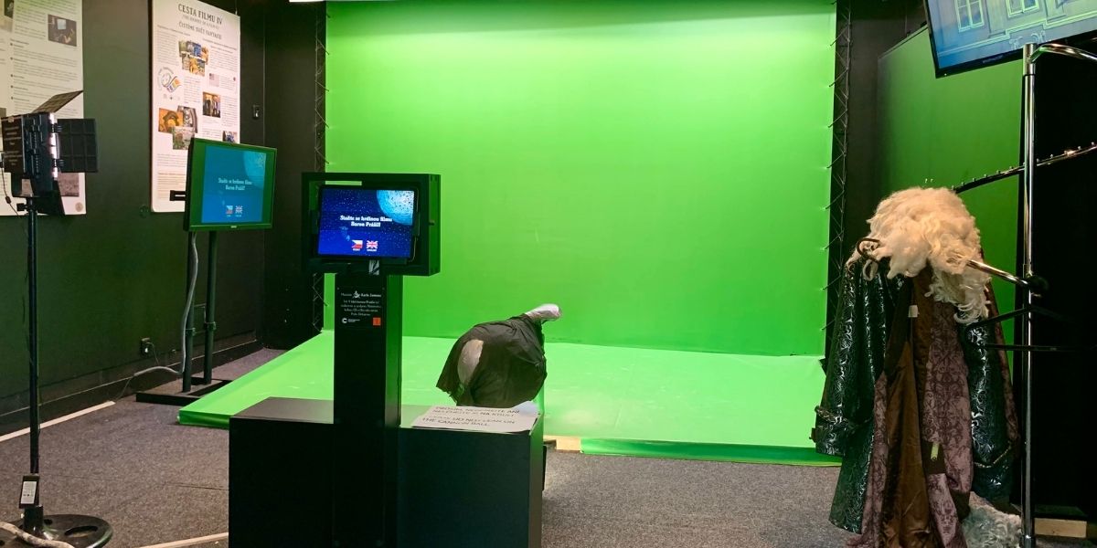 Na úplném konci za prodejnou, kde seženete knížky, filmy, trička i dinosauří vejce a figurky, vás ještě čeká filmové studio s kostýmy z filmu Baron Prášil i režisérskou židličkou. Zahrajte si herce a režiséra.