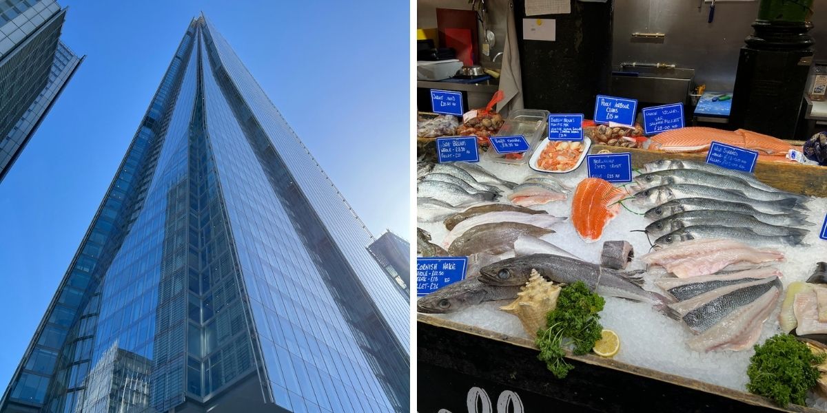 V neděli ráno po snídani jsme vyrazili autobusem k The Shard - střepu, nejvyšší budově v Londýně. Vstup stojí 32 liber / osobu. Při čekání na vstup jsme si prohlédli nedalekou tržnici Borough Market.