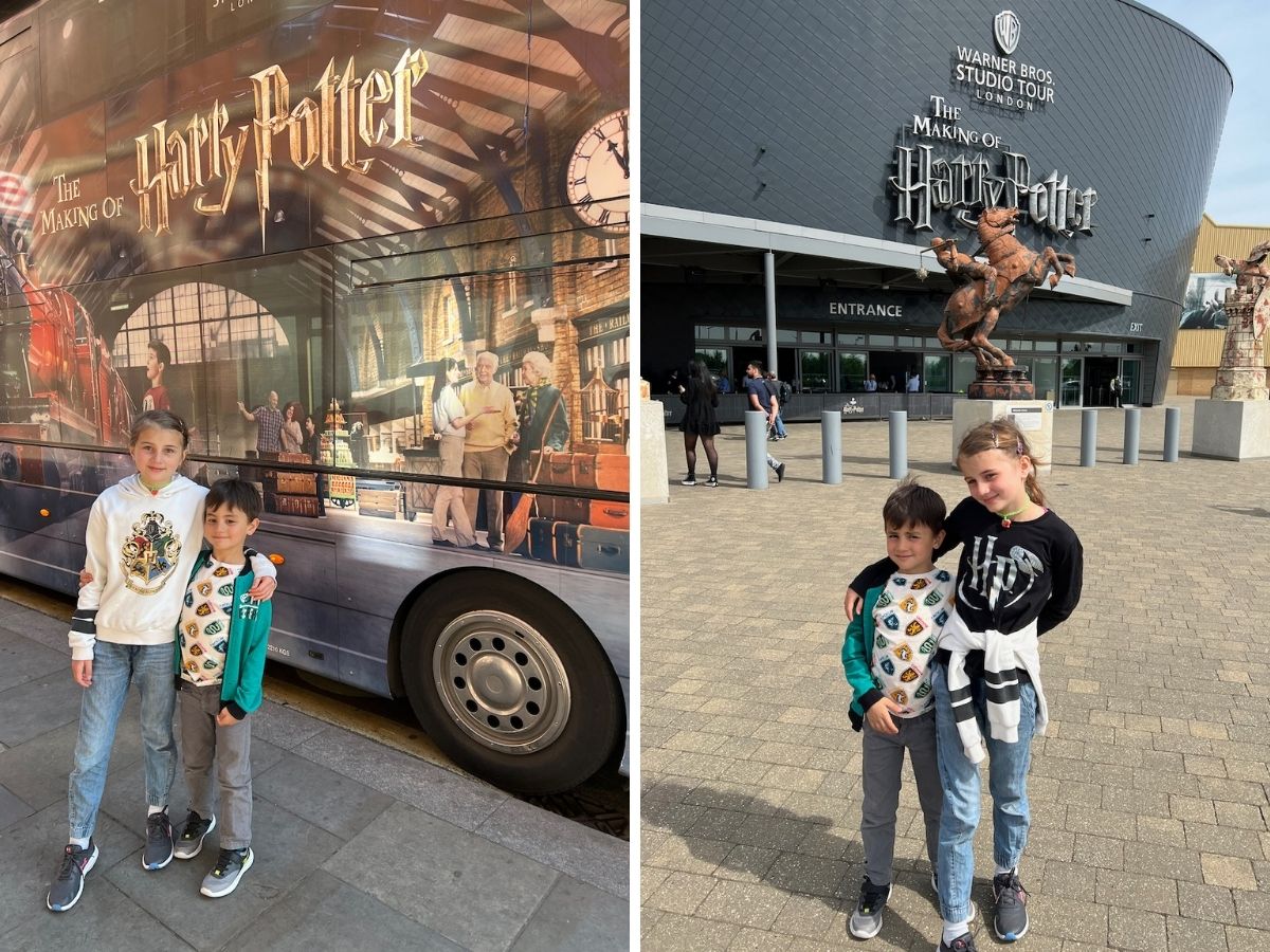 V pondělí nás čekal hlavní program - studio, kde se natáčely filmy Harry Potter. Vyrazili jsme autobusem z nádraží King’s Cross, cesta trvá asi hodinu a v autobusu běží Harry Potter filmy. Vstupné a cesta autobusem nás pro jednoho dospělého a dvě děti vyšly přibližně na 8300 Kč. Vstupenka do Harry Potter studia se kupuje na konkrétní datum a čas, je potřeba ji rezervovat dost dopředu. My ji kupovali přibližně měsíc a půl před cestou a už jsme mnoho termínů na výběr neměli.
