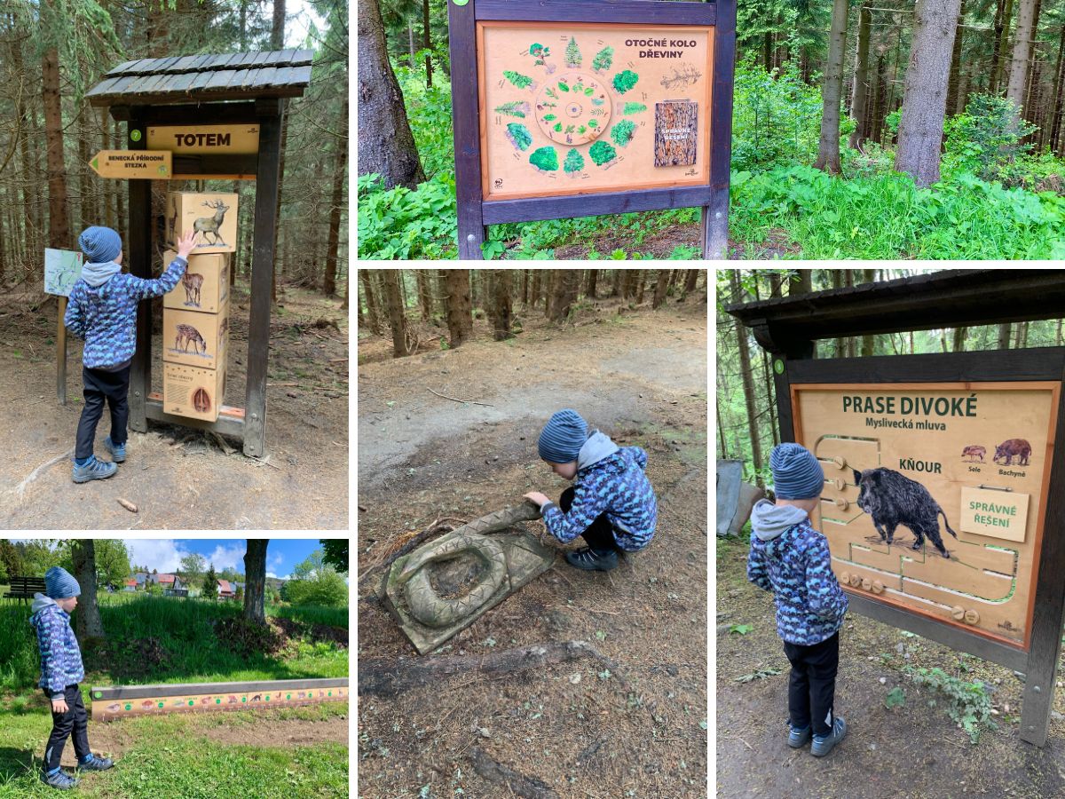 Trasa začíná i končí na centrálním parkovišti Benecka. Měří 3,4 km a zvládnete ji projet i s kočárkem, vede po málo frekventovaných asfaltkách a po zpevněných lesních cestách. Čeká vás 10 zastavení, na kterých se dozvíte plno zajímavostí o krkonošské přírodě.