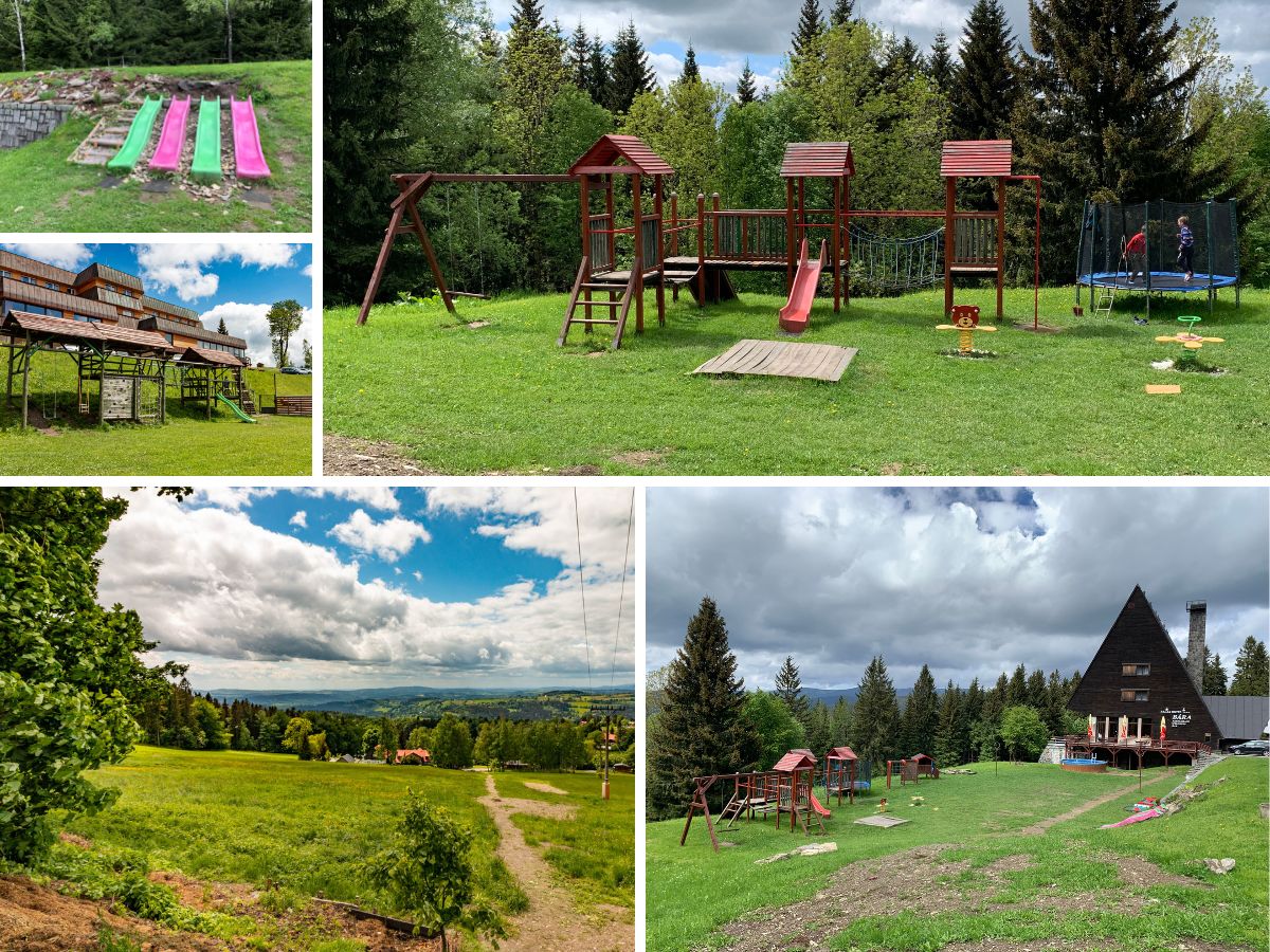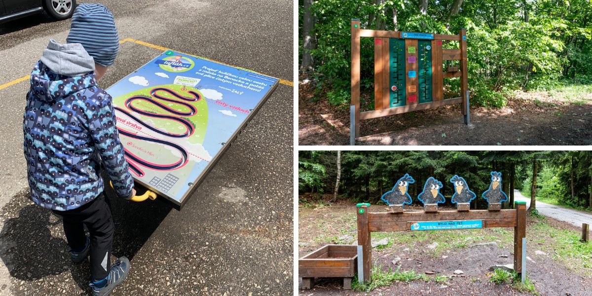 Stezka vede kolem dvou dětských hřišť, takže o zábavu nouze rozhodně nebude. Na první narazíte u Horského hotelu Kubát, kde vás čeká i krásná vyhlídka do okolí. A velké hřiště před Hotelem Bára je opravdu parádní.