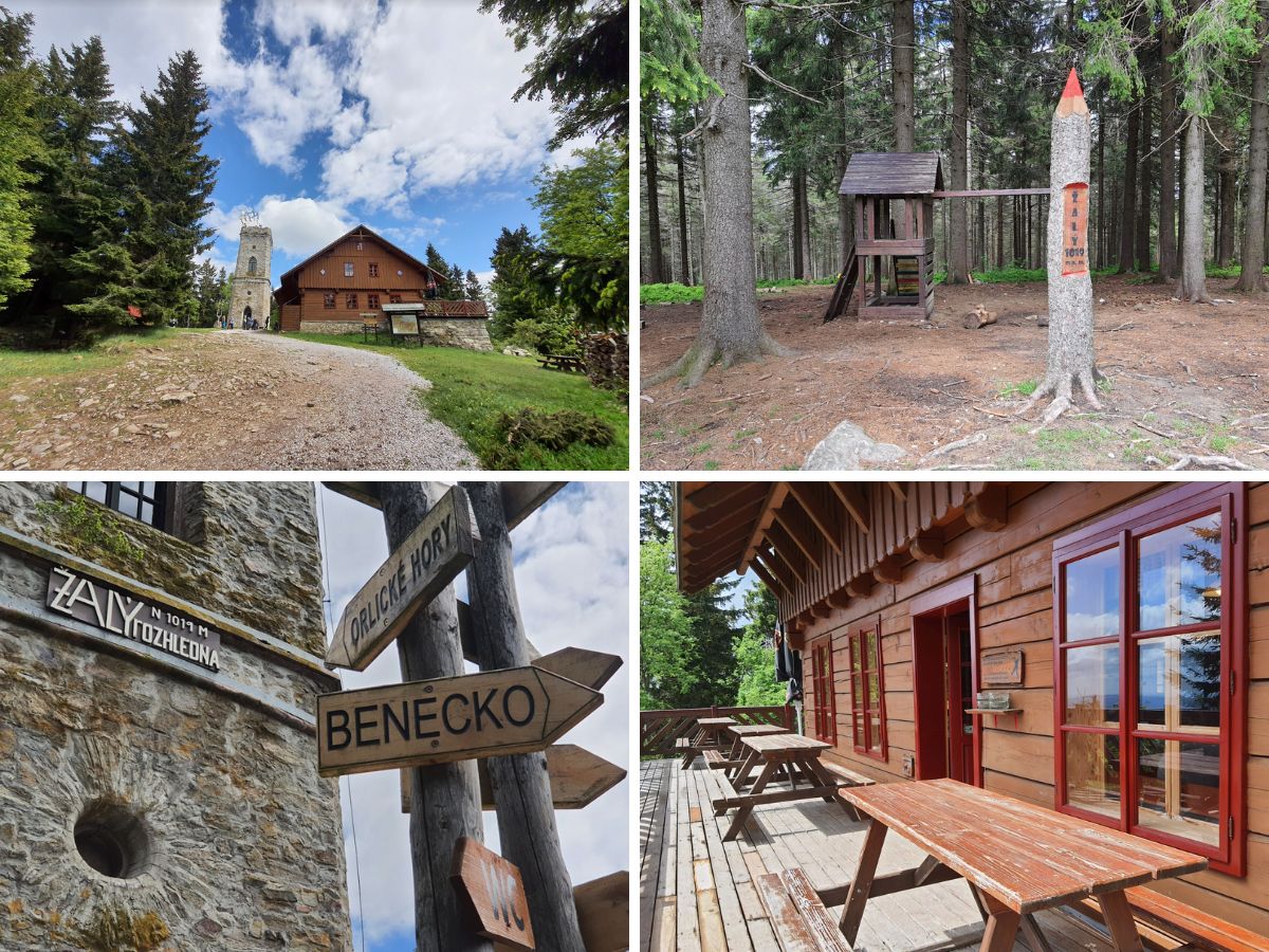 Na vrcholu Žalý najdete kamennou rozhlednu, dětské hřiště a restauraci s typickými krkonošskými dobrotami. Dejte si třeba kyselo nebo borůvkové knedlíky.
