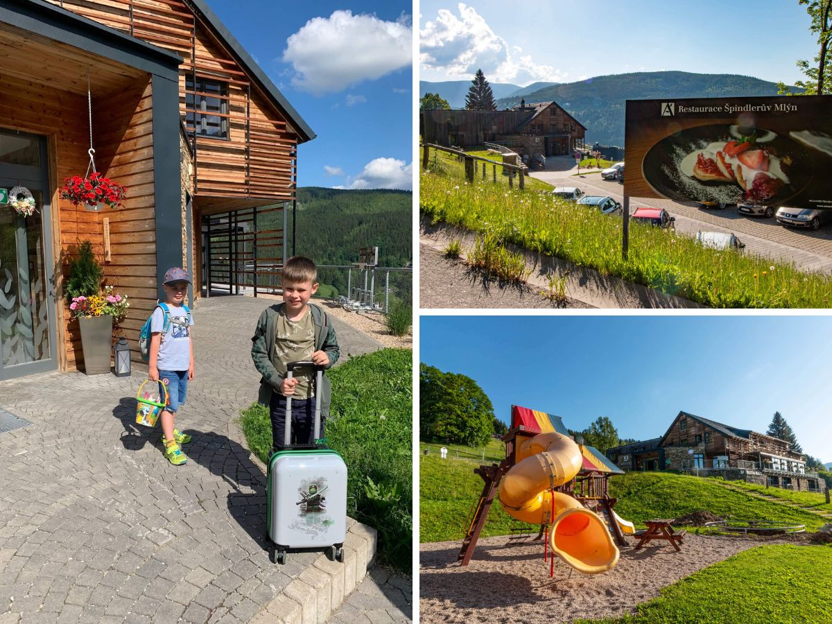 Na Amenity Resort ve Špindlu jsme poprvé narazili před rokem při procházce po horách a od té doby jsme věděli, že sem se určitě chceme vydat. A konečně přišla ta správná chvíle. Vyrazili jsme na víkend ve čtyřech - dvě maminky a dva kluci (6 a 7 let). Cestou jsme se ještě zastavili ve Vrchlabí, protože tam máme oblíbené okénko se zmrzlinou a kousek od něj hřiště s pirátskou lodí.
