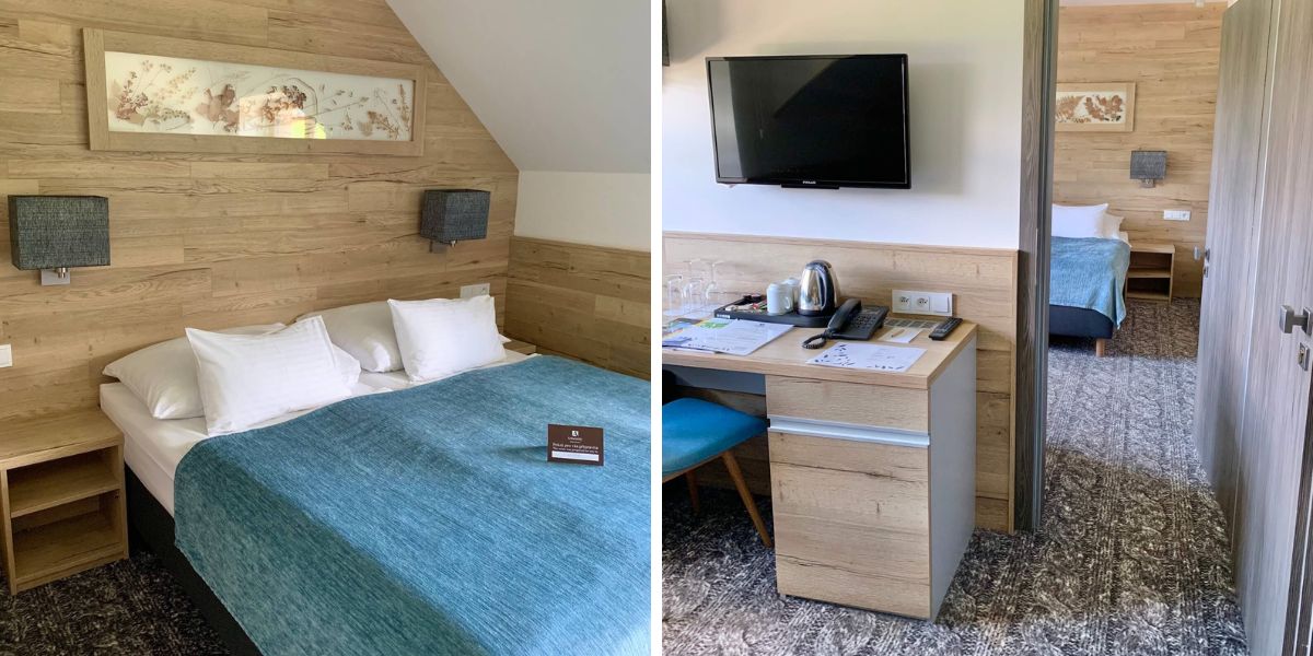 Měli jsme dva propojené dvoulůžkové pokoje, což je naprosto perfektní varianta. Kdykoli jsme mohli být hned spolu, ale zároveň měla každá dvojice soukromí svého pokoje.